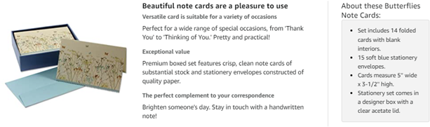 Premium boxed stationery set comes with 14 note cards and 15 envelopes