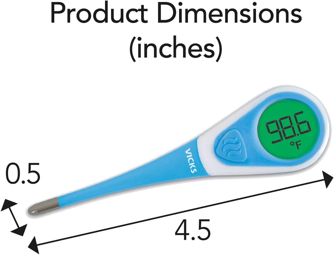 - QUICK, ACCURATE RESULTS – This Vicks Thermometer provides accurate, simple to understand readings in only 8 seconds, so you can get results quickly, when you need them most. It also has a memory feature that recalls and displays last temperature taken.