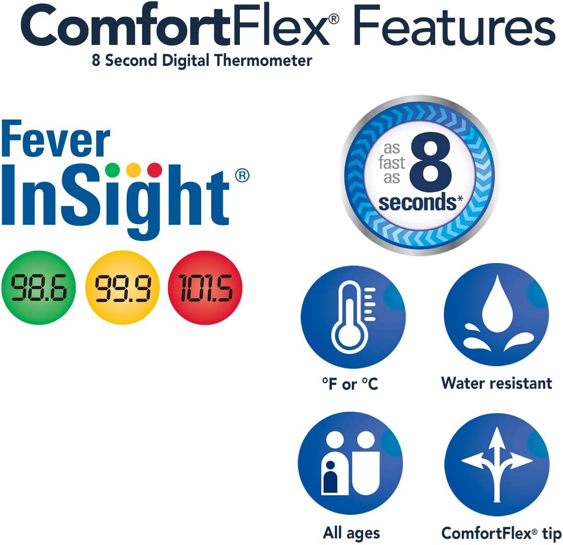 - VERSATILE – With an 8-second turnaround time and flexible, comfortable tip, it’s great as a thermometer for adults as well as infants, toddlers and kids. ComfortFlex can be used as an oral digital thermometer, a baby rectal thermometer or under the arm.