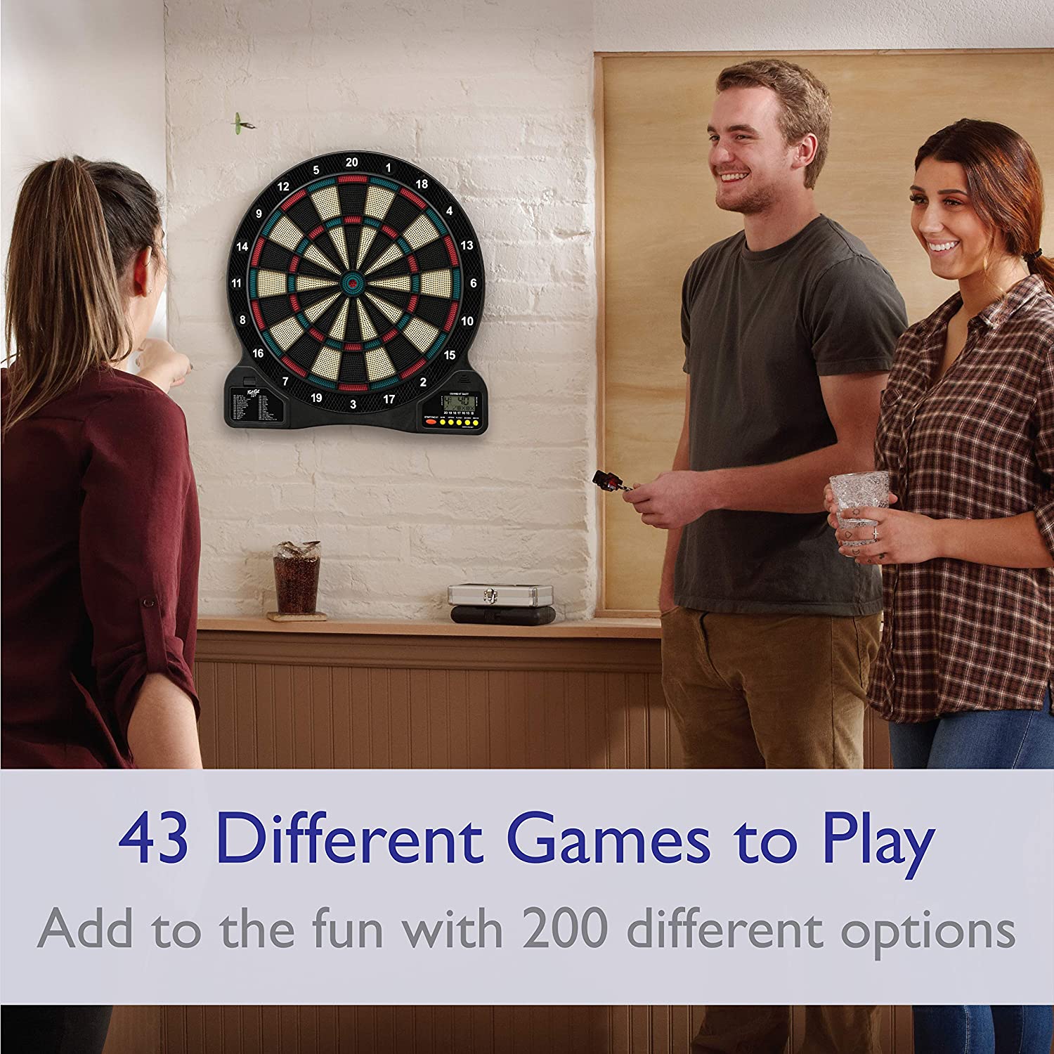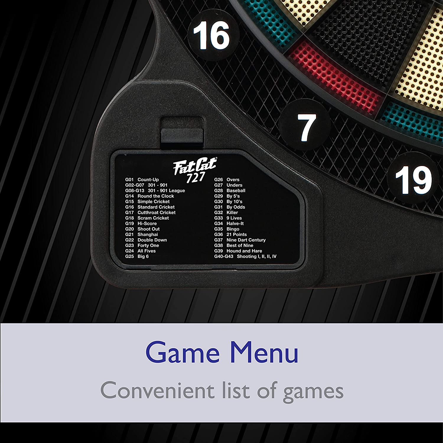 Fat Cat by GLD Products 727 Electronic Dartboard Value Size Over 15 Games and 132 Options Auto-Scoring Compact Display with Missed-Dart Throw Catch Ring Soft Tip Darts and Extra Points Battery Operate