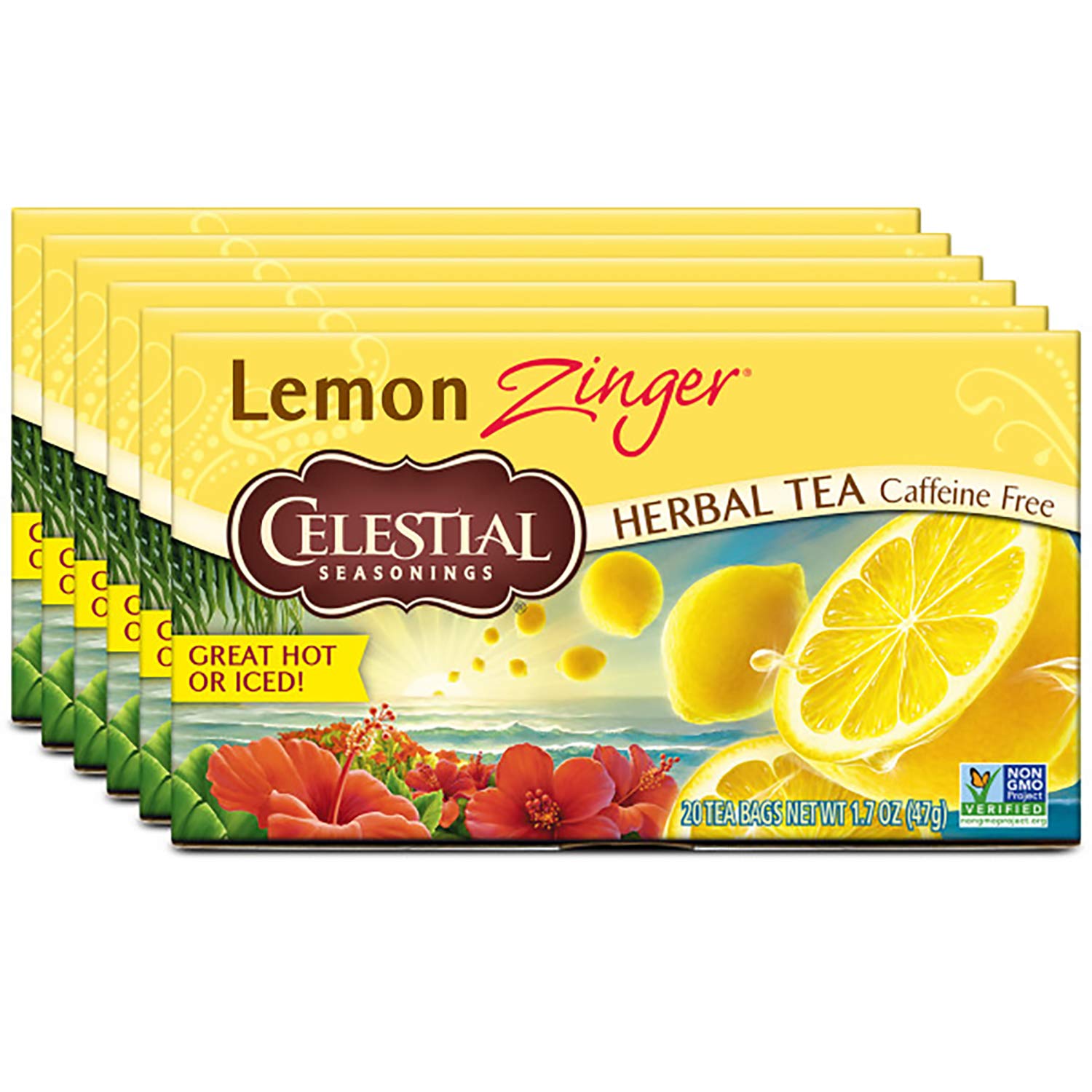 Celestial Seasonings Herbal Tea, Raspberry Zinger, 20 Count (Pack of 6)