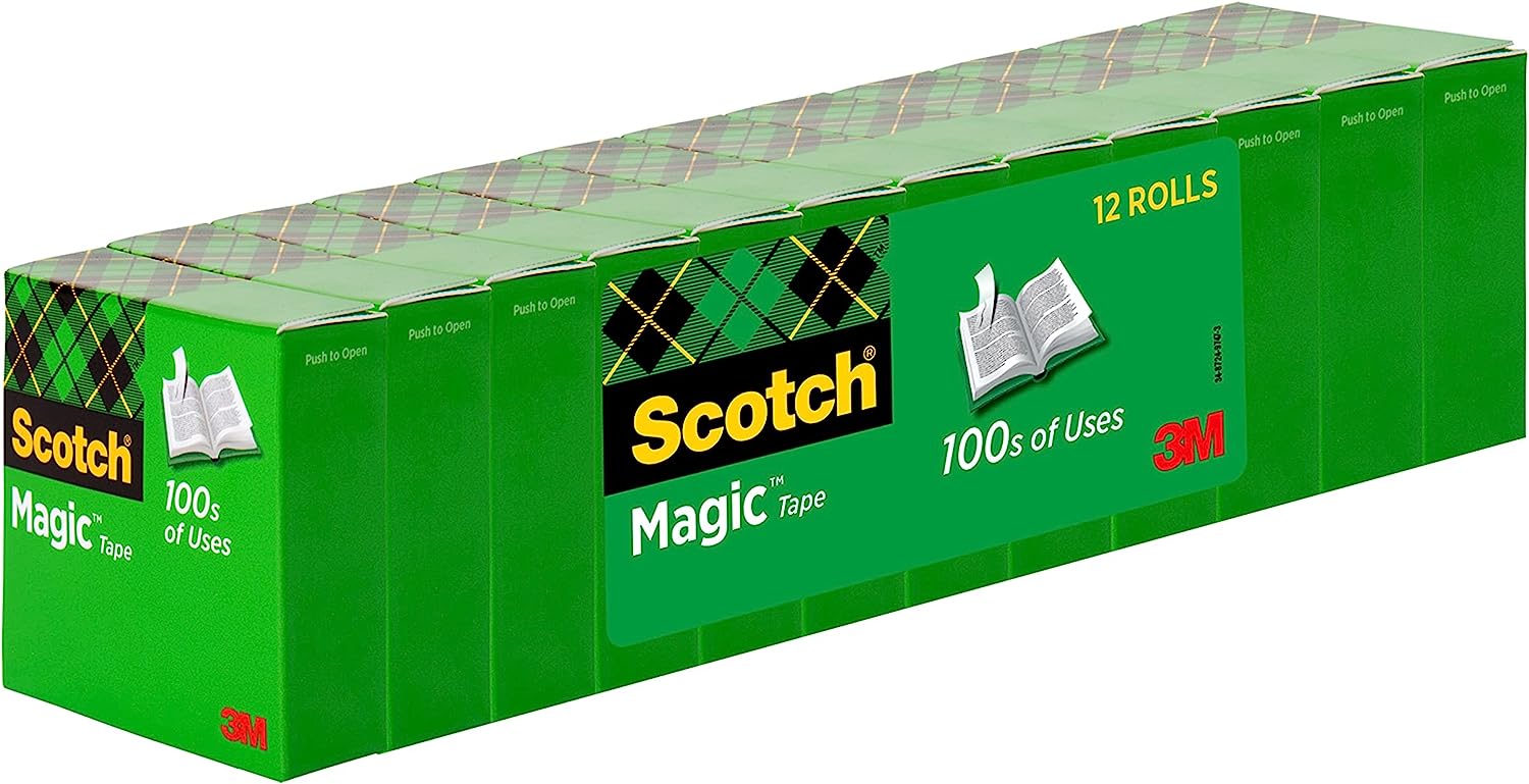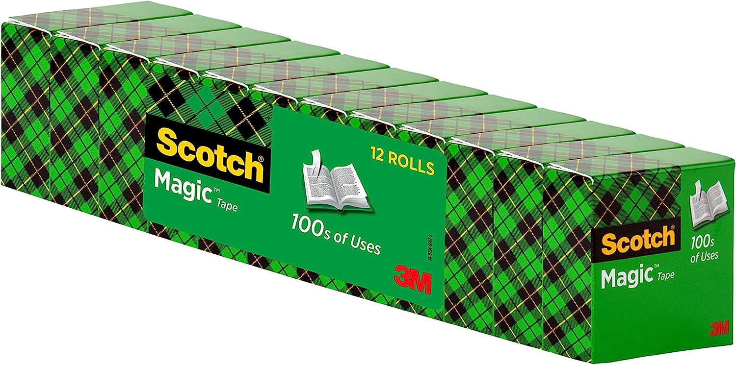 Scotch Magic Tape, 12 Rolls, Numerous Applications, Invisible, Engineered for Repairing, 3/4 x 1000 Inches, Boxed (810K12)