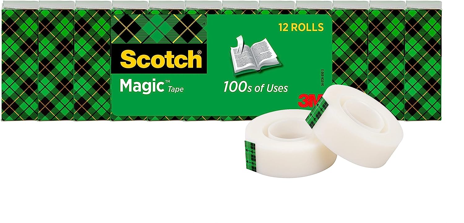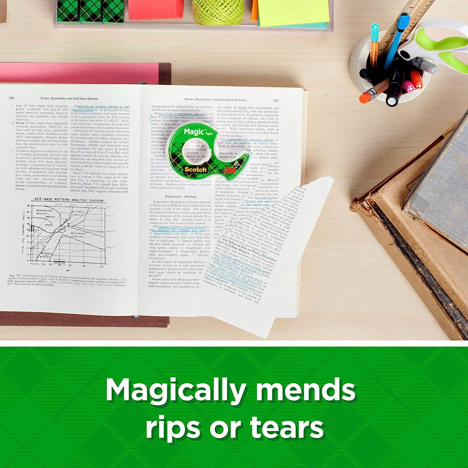 Scotch® Magic™ Tape Frosty on the roll but invisible on paper, Scotch® Magic™ Tape features the original matte-finish design for a strong hold and seamless look. This tape pulls off the roll and cuts smoothly, resisting splits and tears for a sturdy piece. Thanks to its gentle adhesive, you can stick then re-stick each piece as your project demands, then jot a helpful note with a pen or pencil on top when you're done.