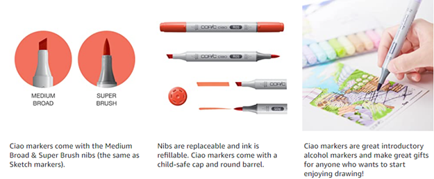 With a simpler design and lower ink volume, Copic Ciao offers a more economical option, yet it features the same premium quality nibs as Copic Sketch. All of our markers are made in Japan with rigorous quality control.
