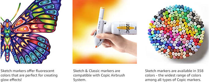Copic Sketch is an ultra-blendable marker made with fast-drying, non-toxic, premium quality alcohol-based dye ink.