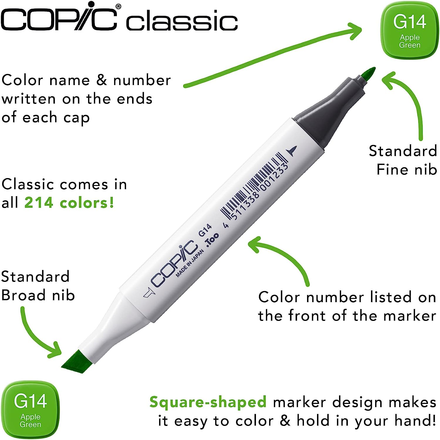 These Copic markers are versatile double-ended refillable markers with fast-drying, permanent non-toxic ink, ideal for calligraphy, airbrushing and graphic arts applications. These markers feature a broad tip on one end offering smooth, consistent coverage for large areas, while the fine tip on the other end allows for easy detail work. Comes with various Neutral Grays and Special Black.