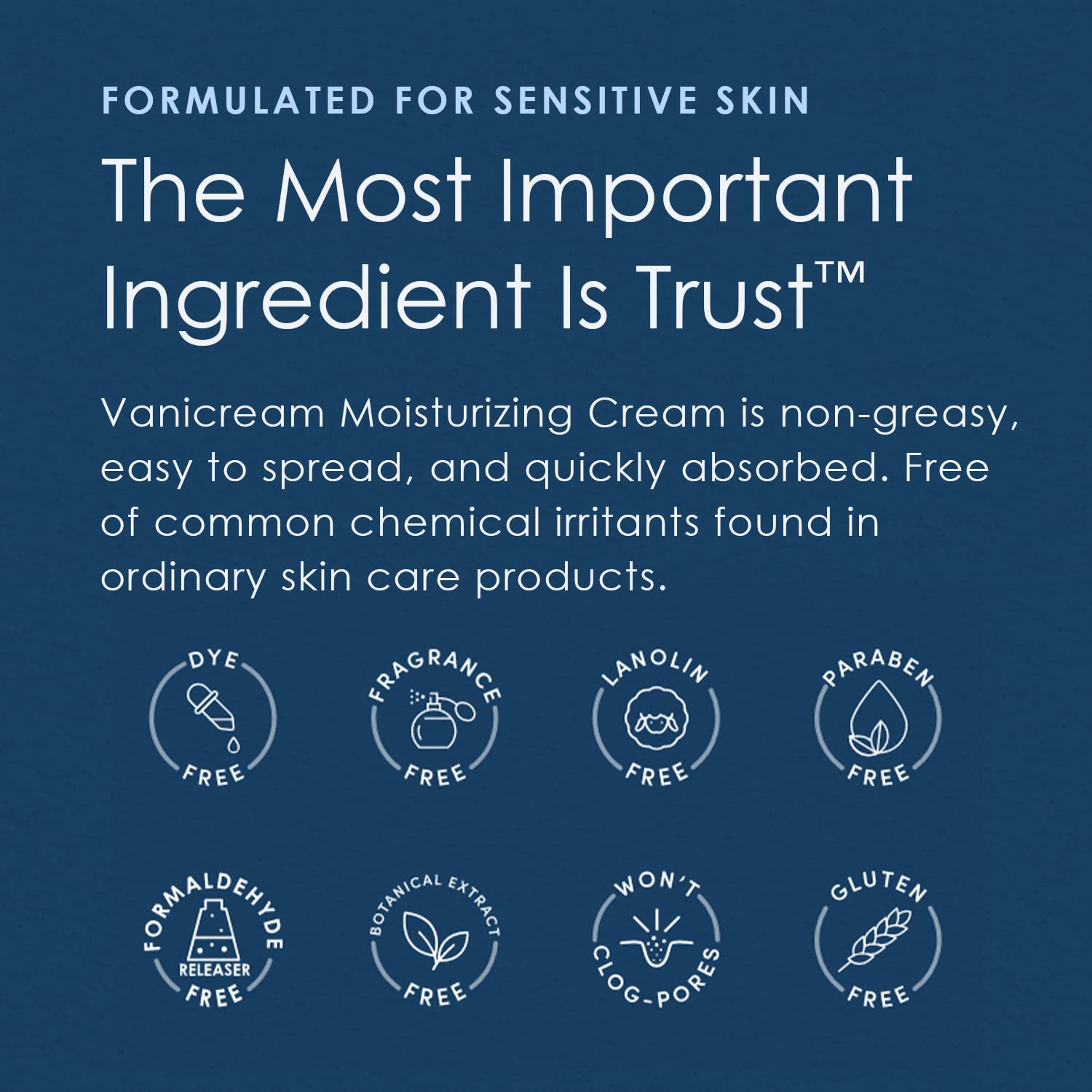 Ingredients for sensitive skin: Free of dyes, fragrance, masking fragrance, lanolin, parabens and formaldehyde releasers; this non-comedogenic skin cream won’t clog pores