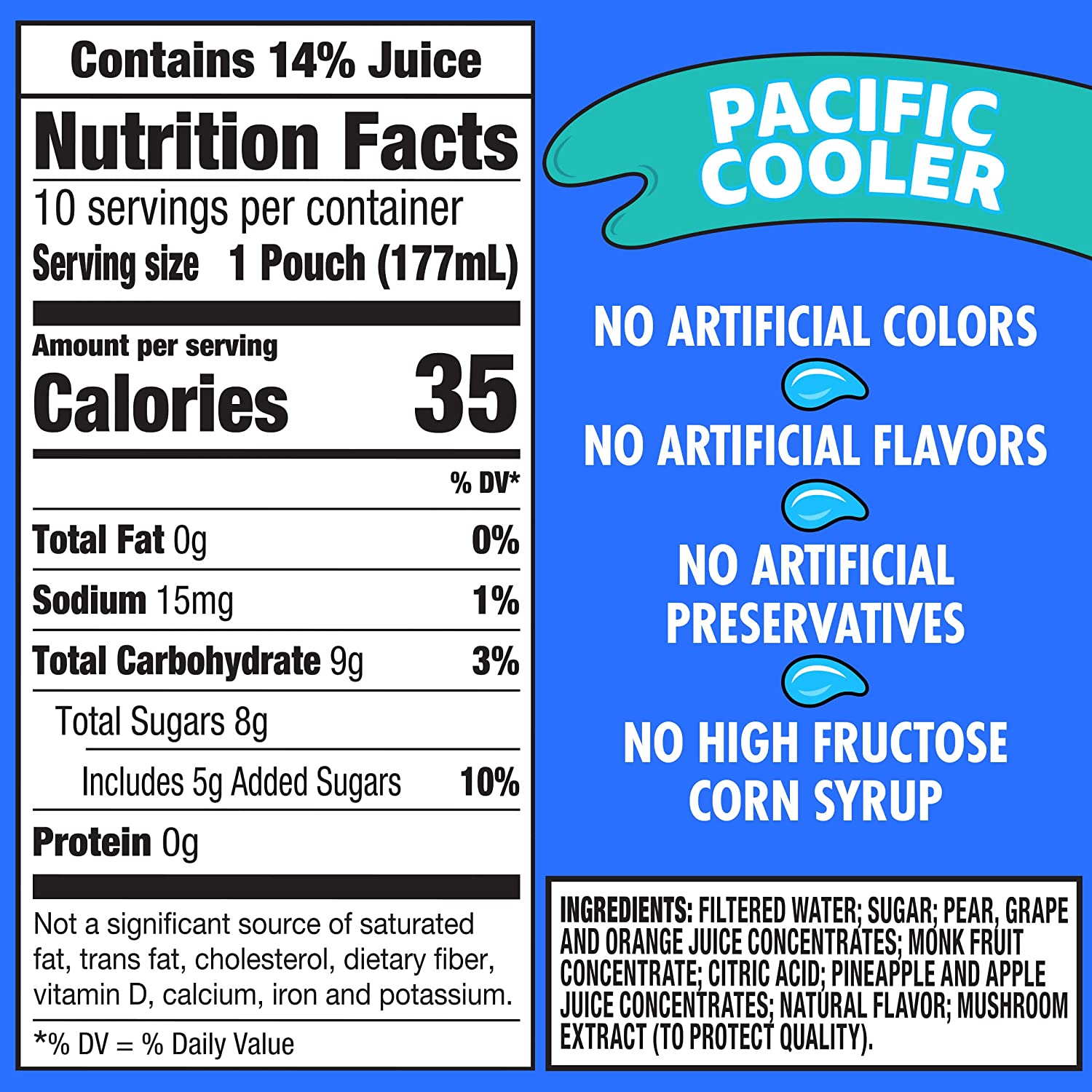 REAL FLAVOR: Pacific Cooler mixed fruit juice drink blend contains no artificial colors, flavors, preservatives or high-fructose corn syrup