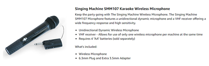 Become A Liberated Karaoke Singer Around With This Wireless Microphone. No Need To Hold On To A Wired Microphone Anymore. Free Up Your Performance To Take Full Advantage Of Your Stage Without Being Tethered Down. Plugs Into Any Ordinary Microphone Jack.