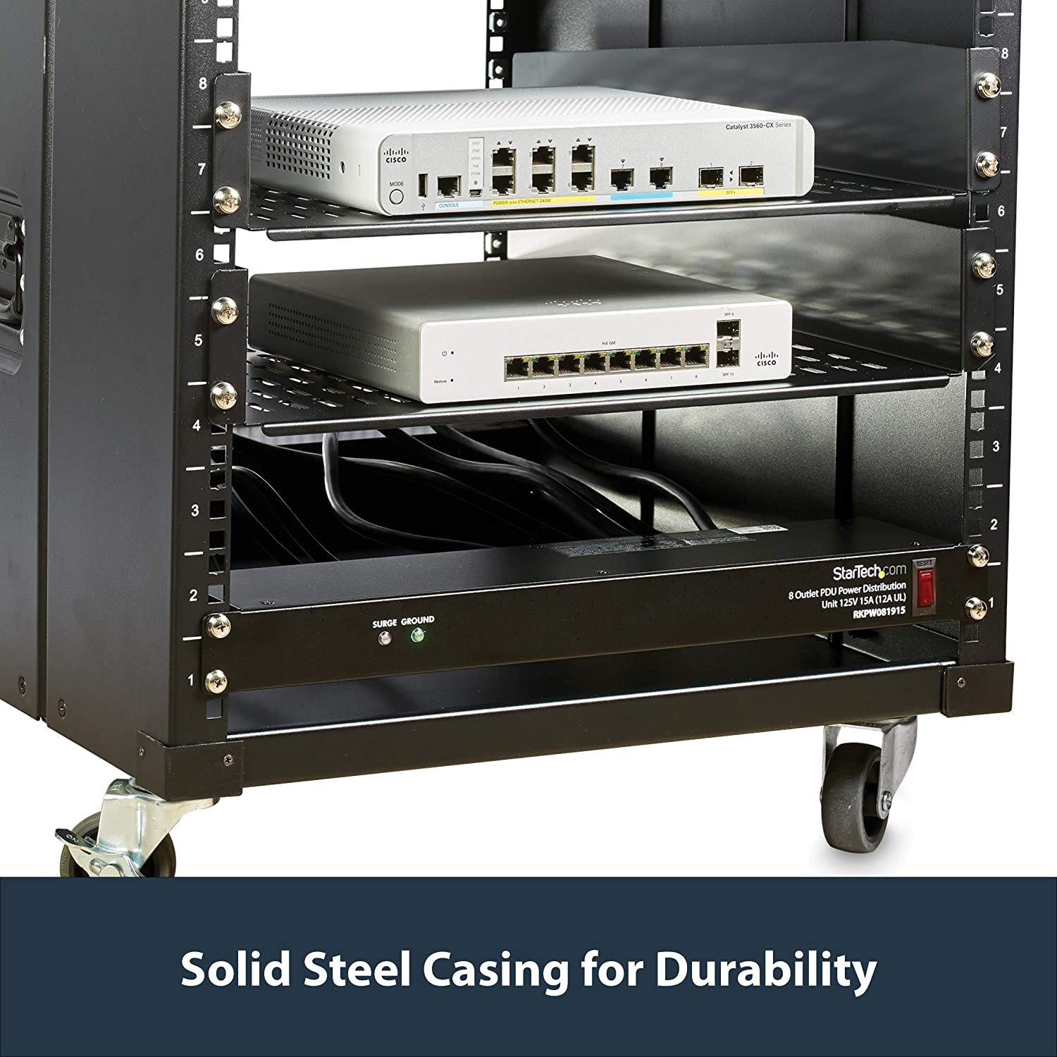 POWER AND CHARGE: This rack mount power strip provides an additional 8 NEMA 5-15 outlets (120V/15A) and features a 6 ft long cord so you can plug your devices in while leaving the rack mobile