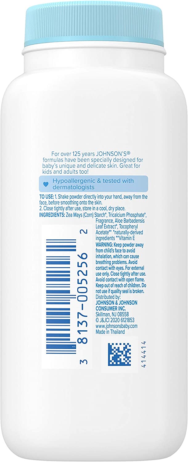 For over 125 years, Johnson's formulas have been specifically designed for baby's delicate skin. To use, shake baby powder directly into your hand, away from the face, before smoothing onto the skin
