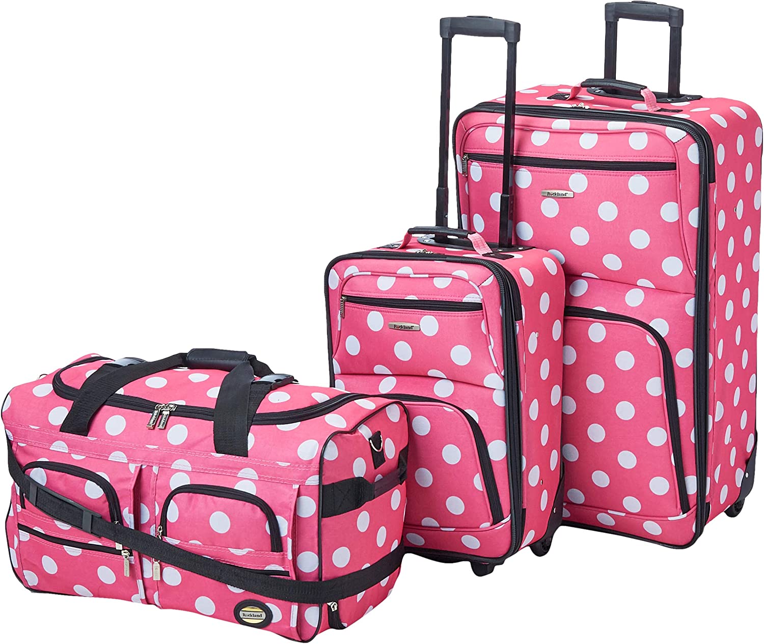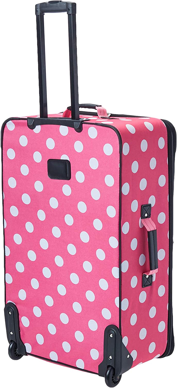 Rockland Vara Softside 3-Piece Upright Luggage Set, Pink Dots, 20 inches,22 inches,28 inches