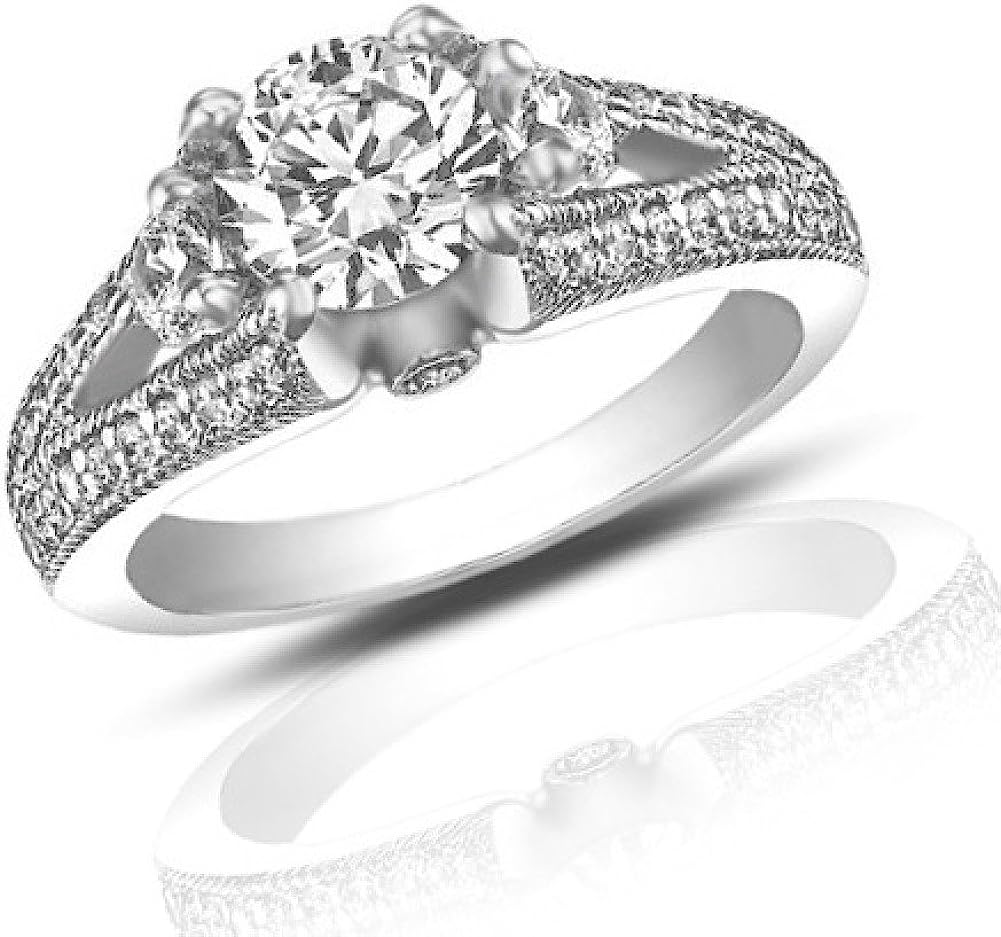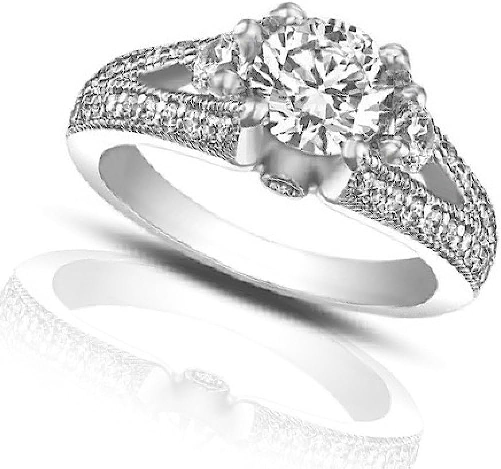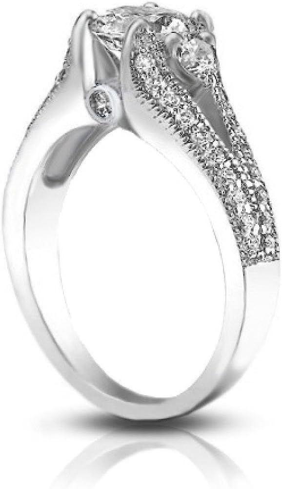 Madina Jewelry 1.90 ct Ladies Round Cut Diamond Semi Mount Ring in Pave Setting in 14 kt White Gold