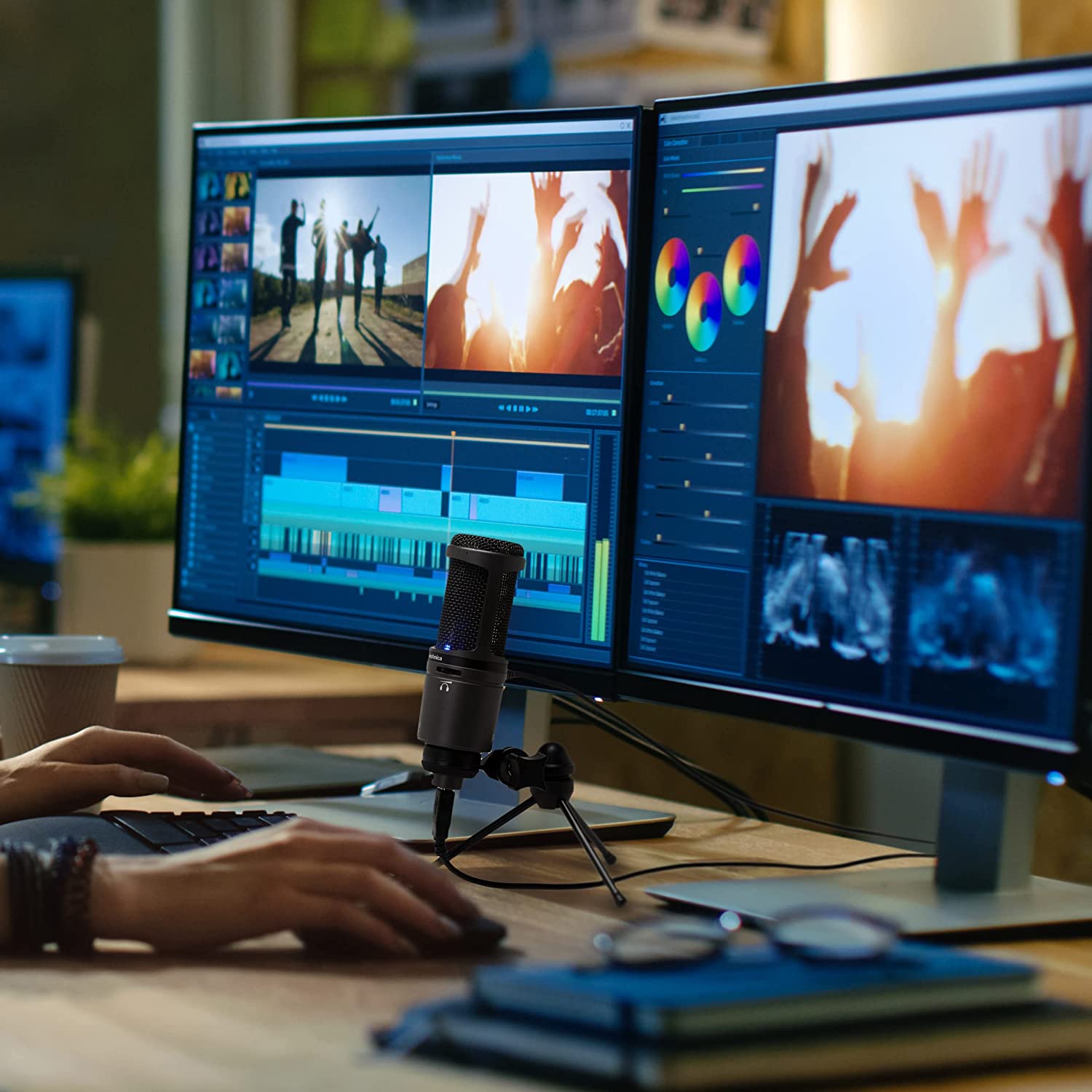 Audio-Technica AT2020USB+ Cardioid Condenser USB Microphone, With Built-In Headphone Jack & Volume Control, Perfect for Content Creators (Black)