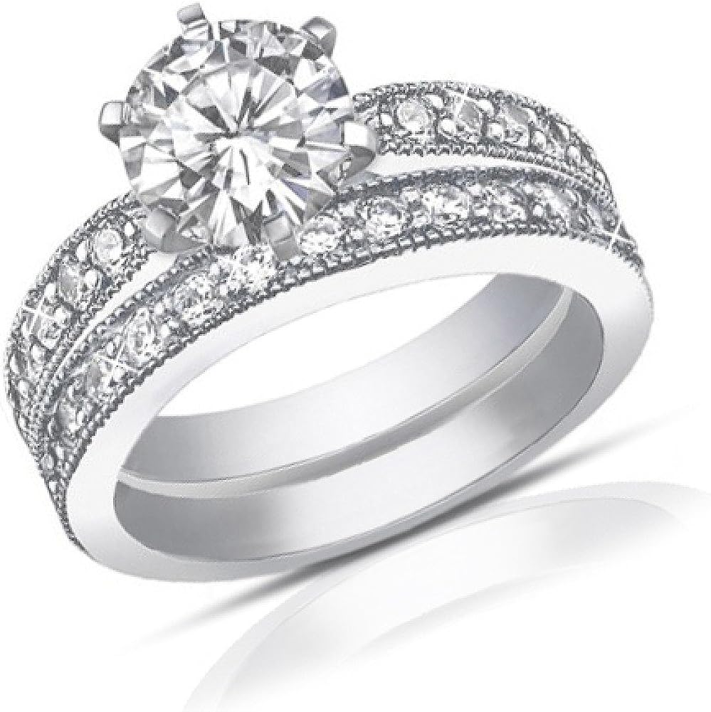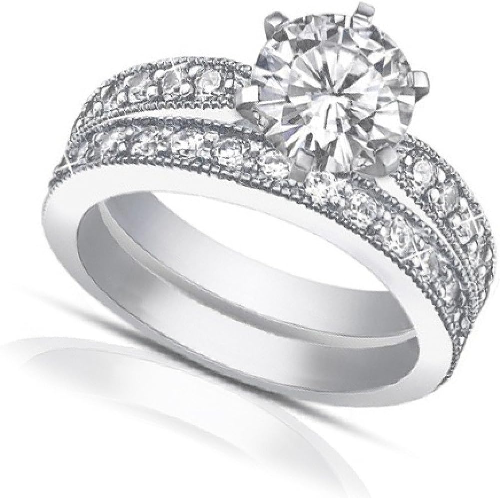 Madina Jewelry 2.25 ct Round Cut Diamond Engagement Ring Set Whit Millgrain on The Shank in Platinum