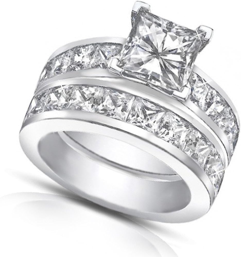 Madina Jewelry 4.50 Ct Princess Cut Diamond Engagement Ring Set in Channel Setting in Platinum