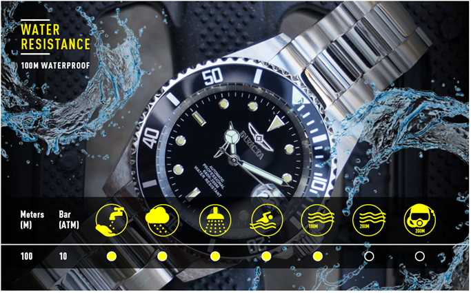 - Mineral crystal; Push/pull crown; Stationary gold tone stainless steel bezel accented with 30 crystals; 100 meter water resistant: Suitable for recreational surfing, swimming, snorkeling, sailing and water sports. Not suitable for diving.
