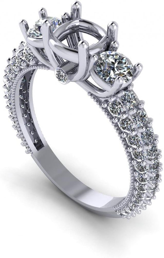 Madina Jewelry 1.90 ct Ladies Round Cut Diamond Semi Mount Ring in Pave Setting in 14 kt White Gold