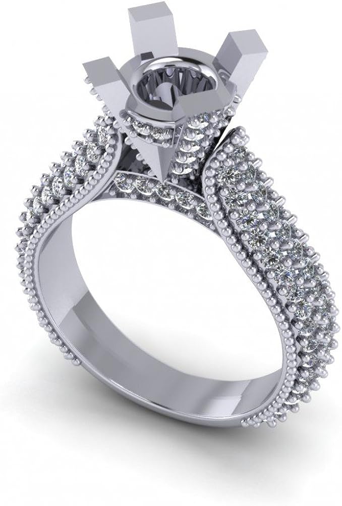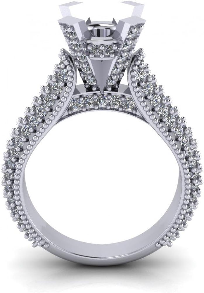 Madina Jewelry 1.90 ct Ladies Round Cut Diamond Semi Mount Ring in Pave Setting in 14 kt White Gold