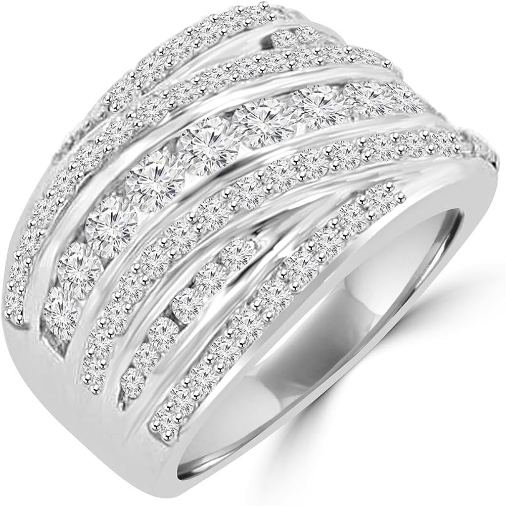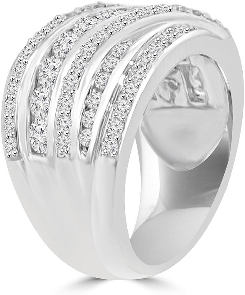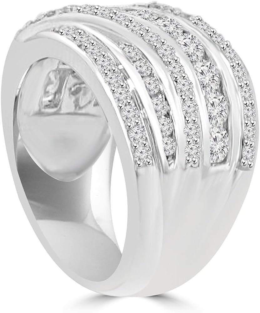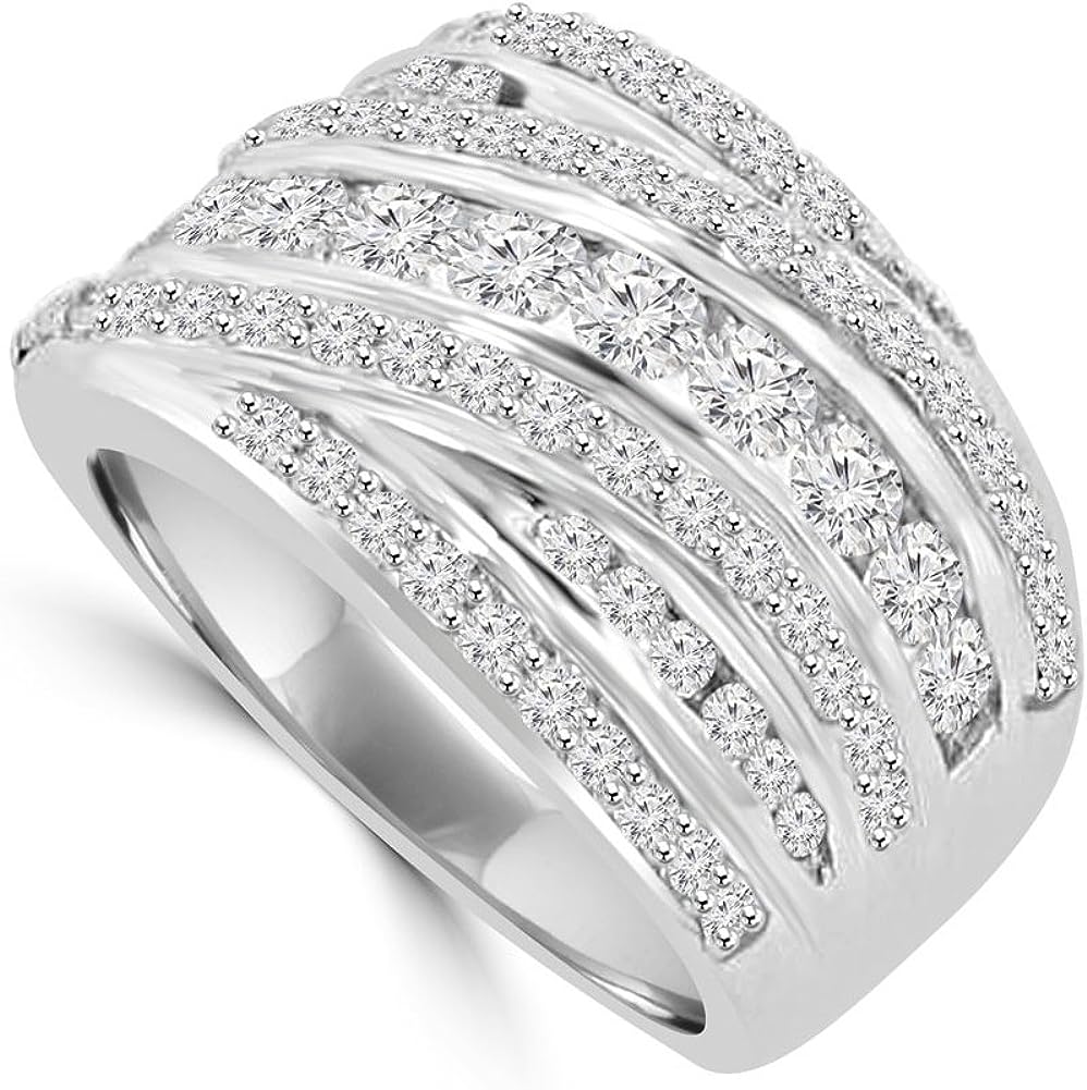 Madina Jewelry 1.16 ct Ladies Three Row Round Cut Diamond Wedding Band (Color G Clarity SI-1) in 18 kt White Gold