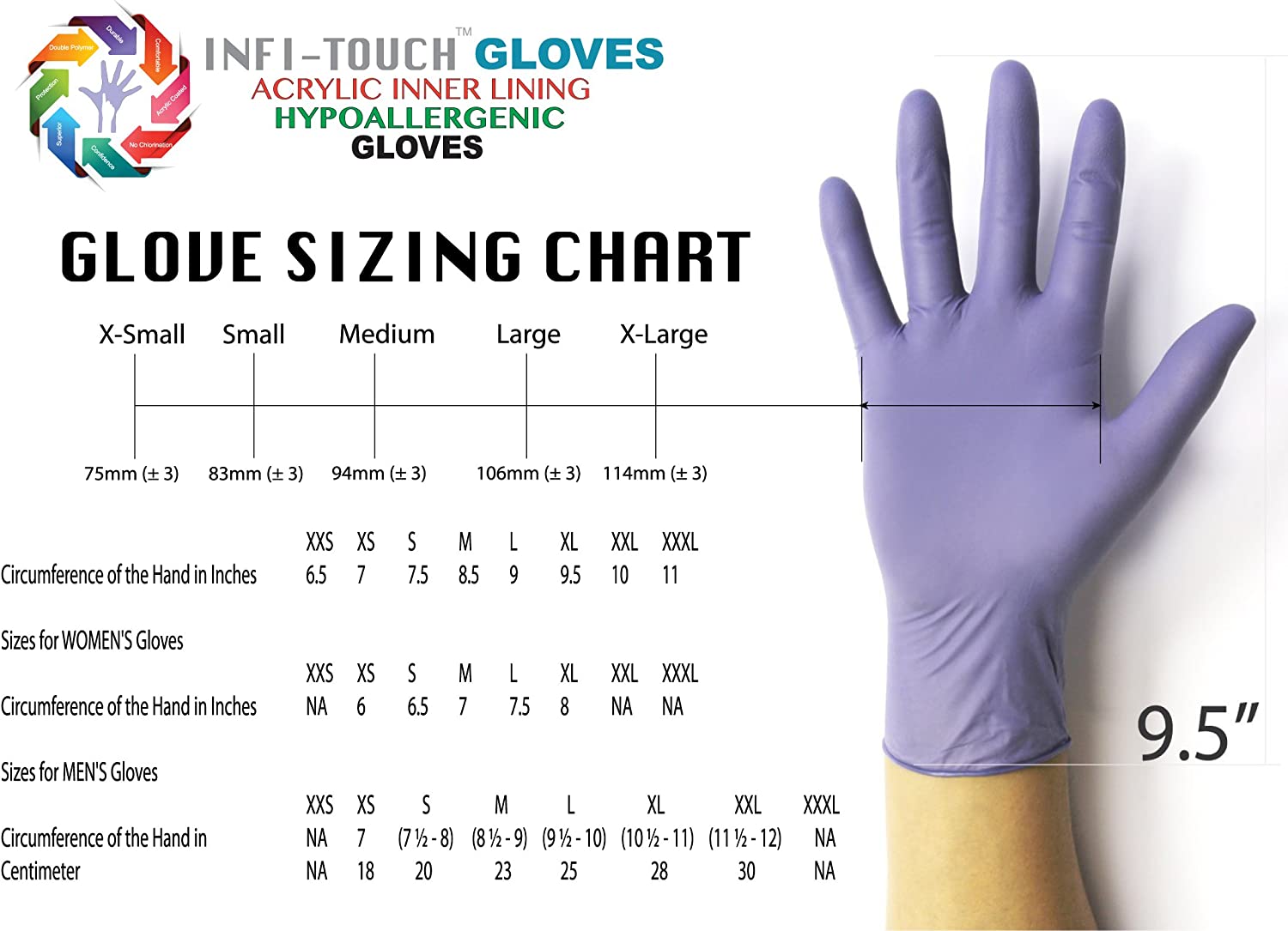 Infi-Touch Disposable Gloves , Steel Blue Heavy Duty Nitrile Gloves, 9.5" Length, Powder Free, 6 Mil Thickness , X-Large , Pack of 100