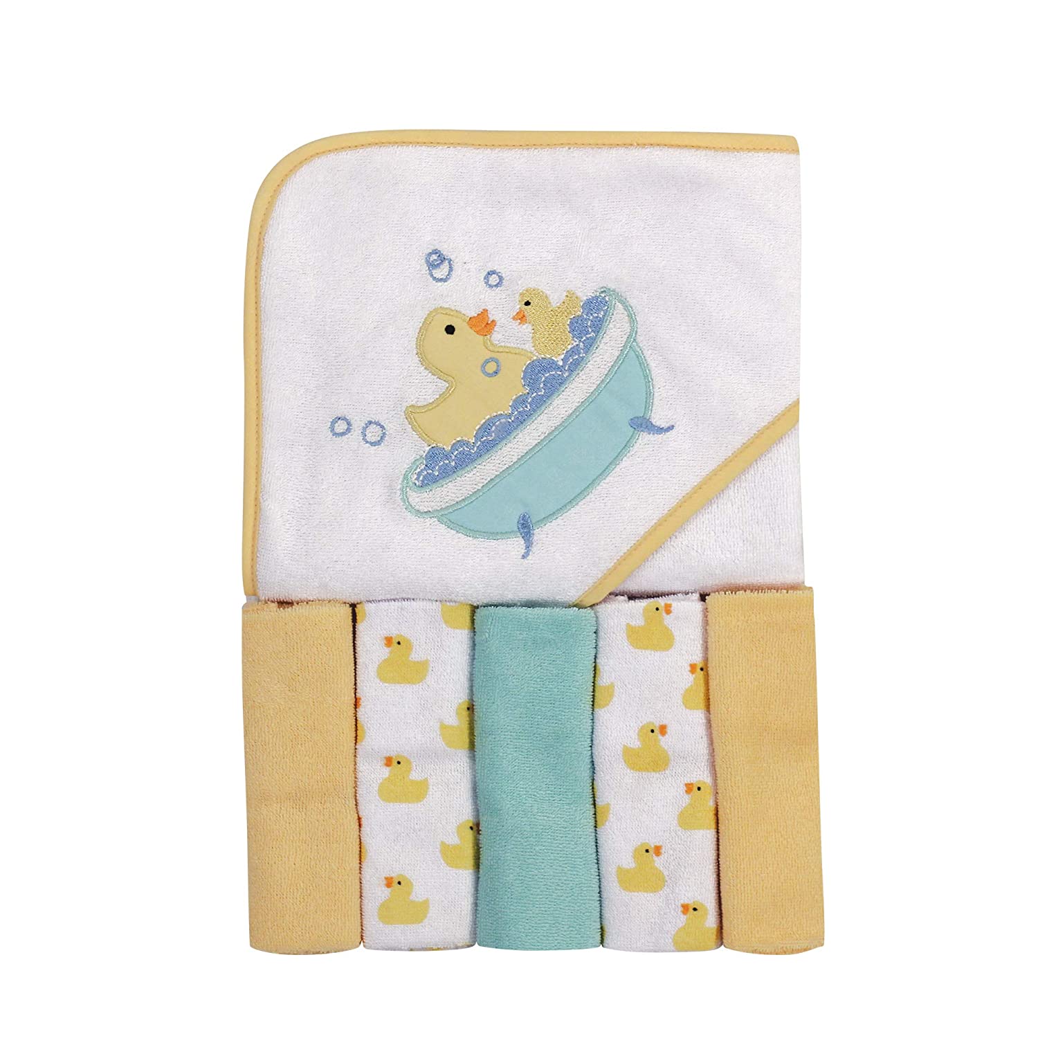 Luvable Friends Unisex Baby Hooded Towel with Five Washcloths, Duck, One Size