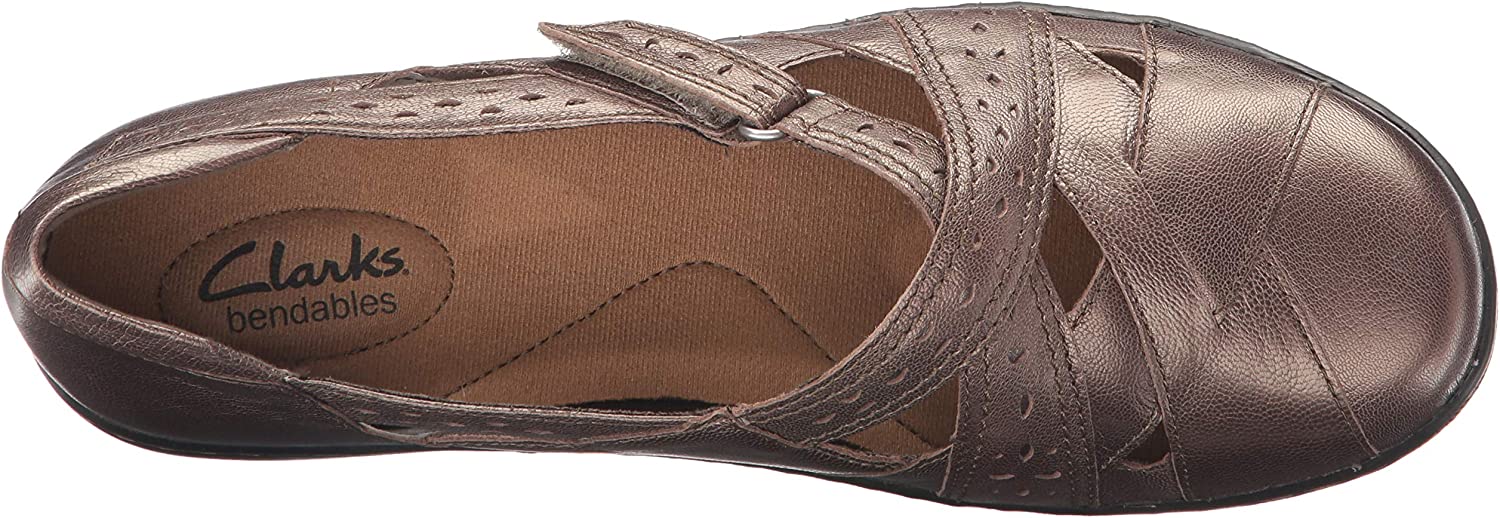 Beautifully constructed in soft leather with a low wedge for walking ease, this clarks collection shoe goes way beyond basic. an adjustable hook-and-loop strap, fabric linings, and super flexible, lightweight tpr outsoles cushion the foot in comfort.