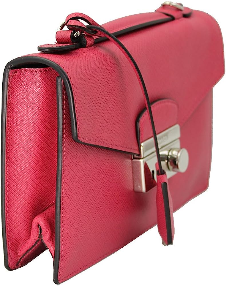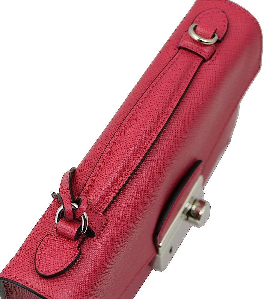 PRADA Pink Saffiano Leather Clutch Bag W/Strap Bt0960 Peonia