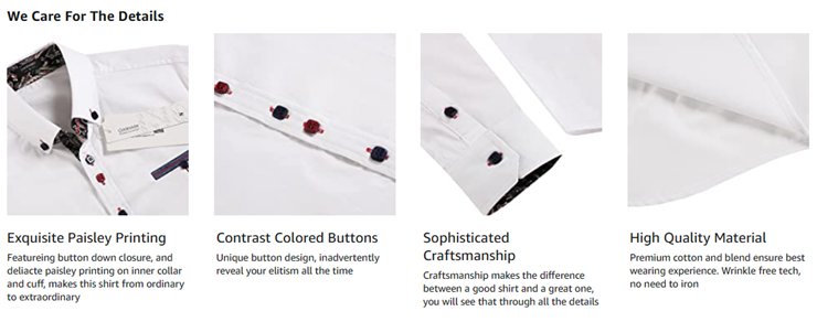 • Stylish Paisley - Deliacte paisley on inner collar and cuffs, soft colors and simple structures, each piece exudes luxury while remaining completely practical.