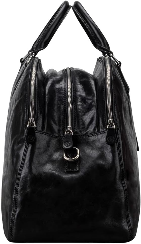 Luxury Leather Luggage Bag - 3 Zipped Sections | The LilianaL | Handcrafted In Italy | Night Black