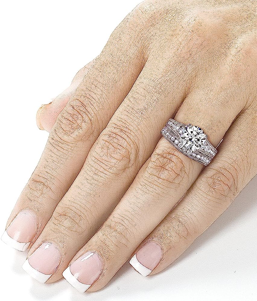 Kobelli Antique Style Floral Diamond Bridal Set 1 1/2 CTW in 14k White Gold
