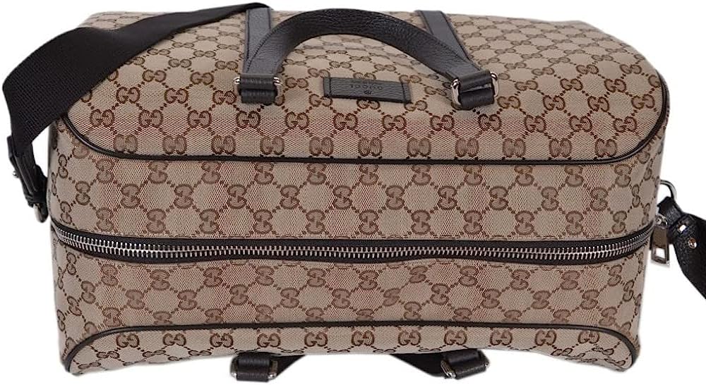 A favorite Gucci travel piece this large beige and brown canvas Gucci GG canvas duffle bag will make your next trip a breeze. This roomy luggage piece has room for clothes, shoes, and toiletries. Model 610105