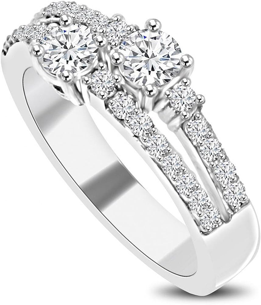 Madina Jewelry 1.16 ct Ladies Three Row Round Cut Diamond Wedding Band (Color G Clarity SI-1) in 18 kt White Gold