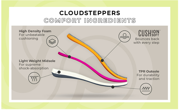 - Comfort Features: Ortholite footbed, EVA outsole, soft textile lining