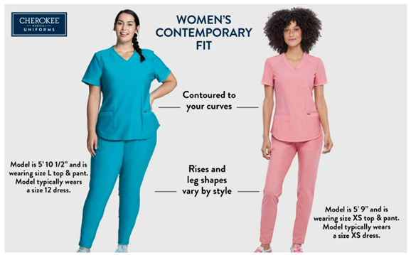 FLATTERING FIT, SIZES UP TO 5XL - This Contemporary fit sporty Cherokee scrub jacket features a zip front closure, stand-up collar, stretchy knit panels, front and back princess seams for fit and shaping, and locker loop. Available in sizes from XXS to 5XL. These nursing uniforms are designed for comfort, style and durability. Center back length (size S) is 26". (Scrub pants and underscrub sold separately.)