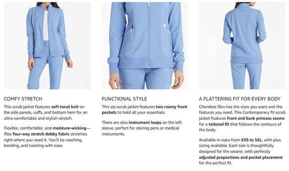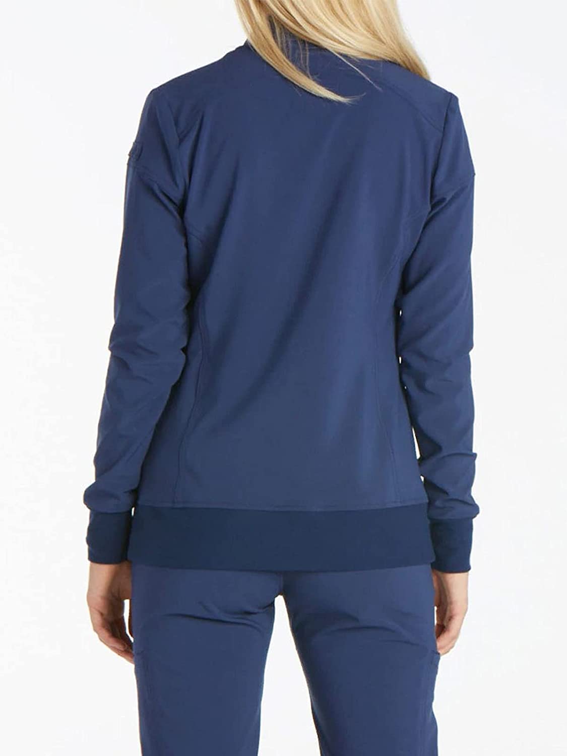 SPORTY LOOK - Work jackets for women get a style upgrade thanks to the stretch fabric, comfy knit panels, and design details in style CK303. This RN scrub jacket includes a zip front with a zipper garage to protect your neck. There are angled front yoke seams and a curved back yoke seam. Front and back princess seams pair well with upper sleeve seams. Iflex Cherokee scrubs for women have the style and comfort you need.