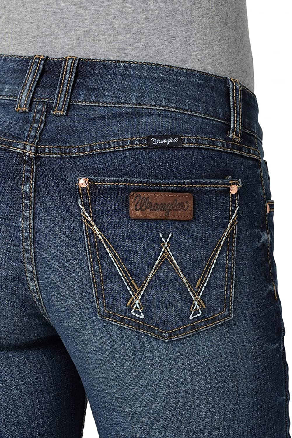 - CLASSIC EMBELLISHMENTS. This wide leg jean is finished with our Wrangler "W" embroidery on the back pockets and a Wrangler logo patch. Maintain that effortless classic style with a touch of retro.