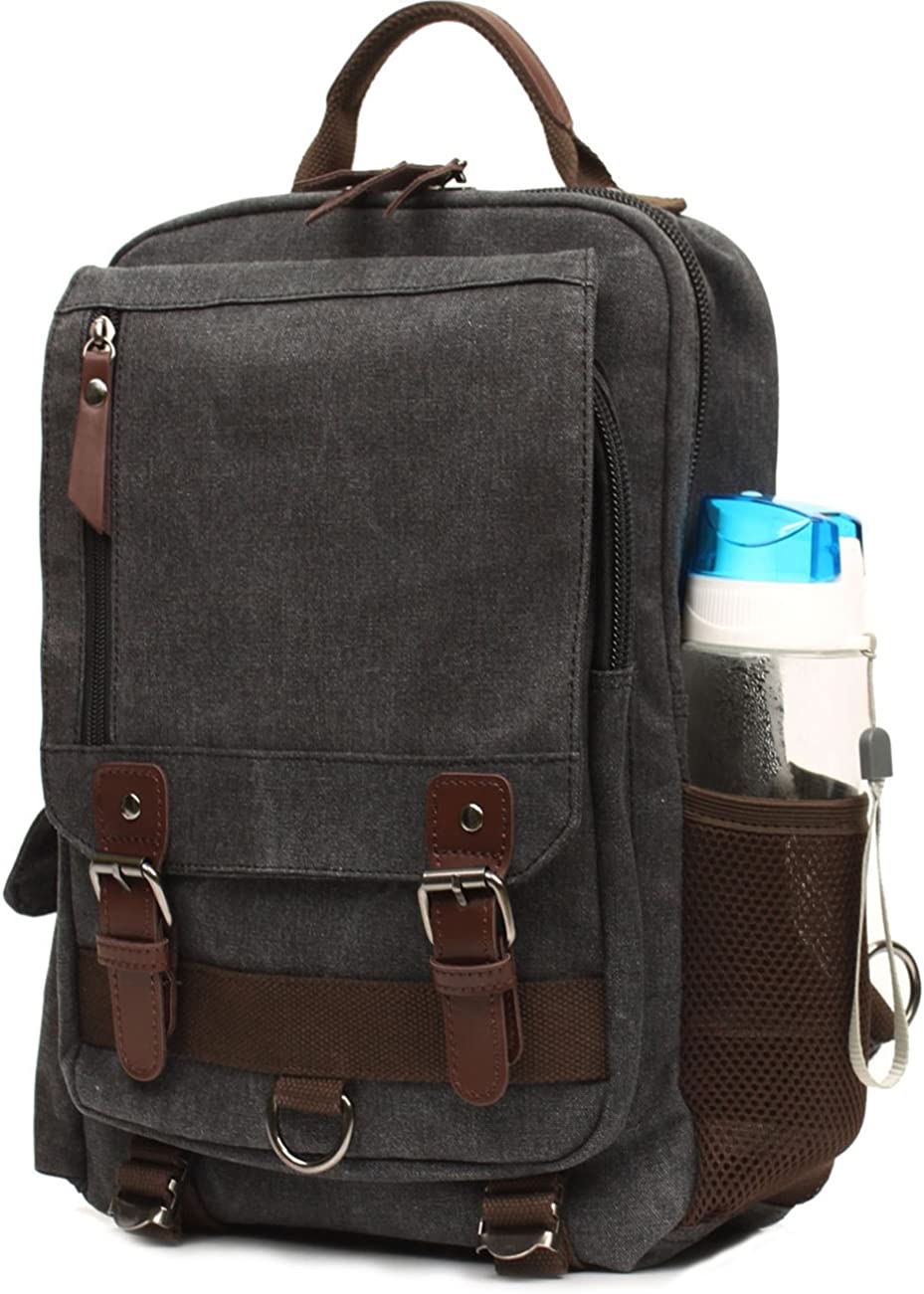 Material: Soft and durable Washed Canvas with Leather Decoration. The messenger sling bag is made of a very durable looking canvas material on the outside ,more luxurious material inside the main compartment.