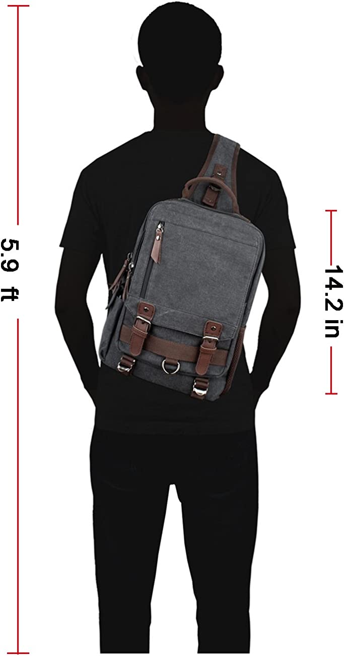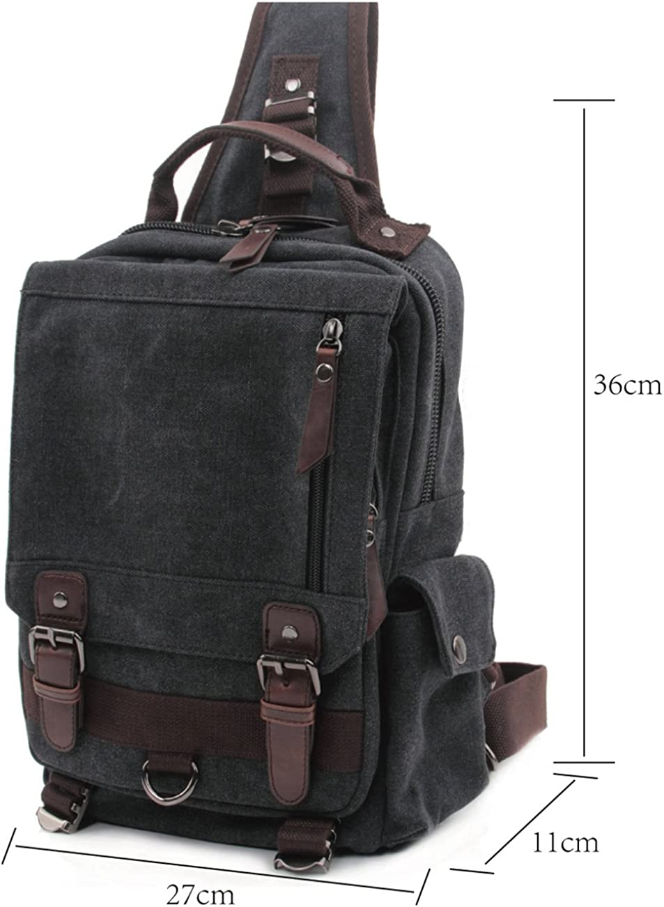 Size: 10.6*14.1*4.3(inches)(L*H*W).27*11*36cm Weight 1.6 pounds 0.745kg The shoulder bag can fit a 13" laptop/tablet/iPad. but this canvas leather chest bag is not a large bag, So pls see the size dimensions before placing your order.