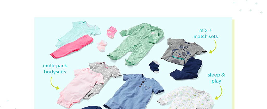 Featuring ruffles, floral prints, and cute critters, this 4-piece mix-and-match set includes two body suits and two pants.