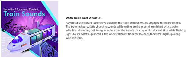 - FUN ENTERTAINMENT. Children love toys with sound effects and listening to music. A charming musical tune is played as the train rolls along on the ground, combined with realistic whistle, bell and chugging sounds for increased fun.