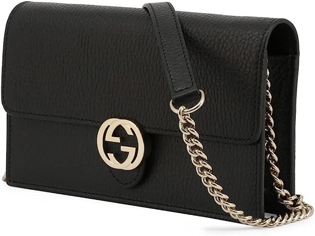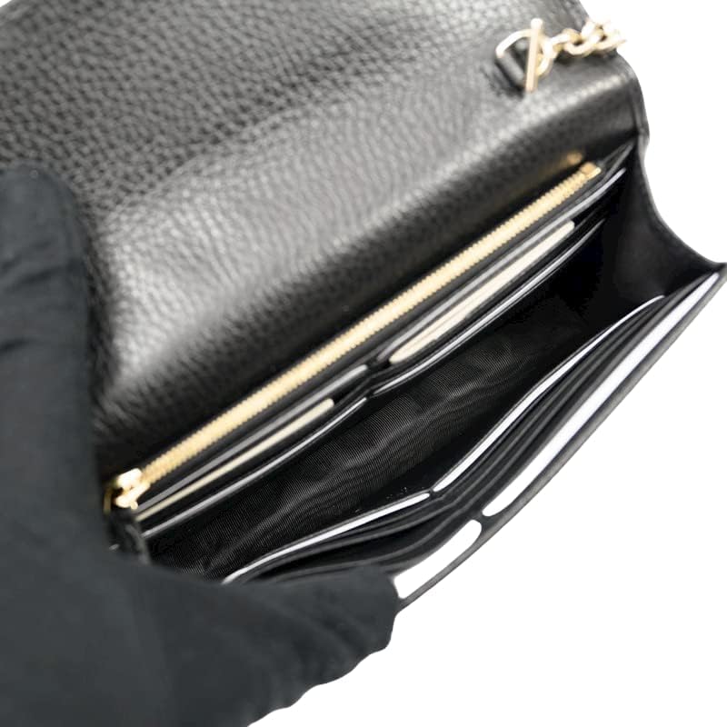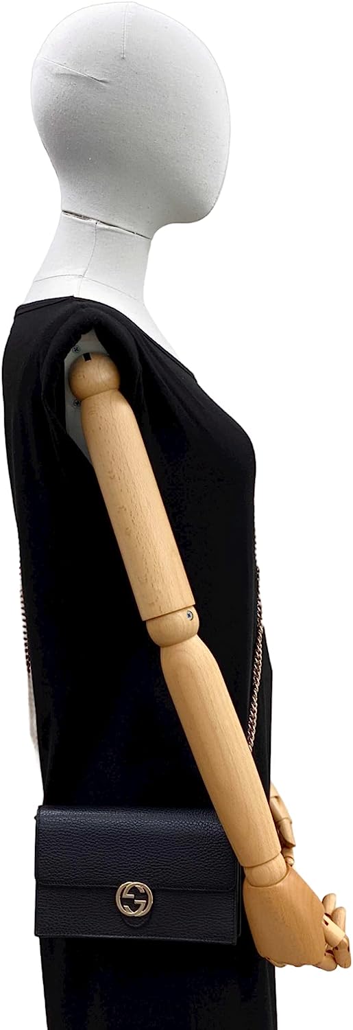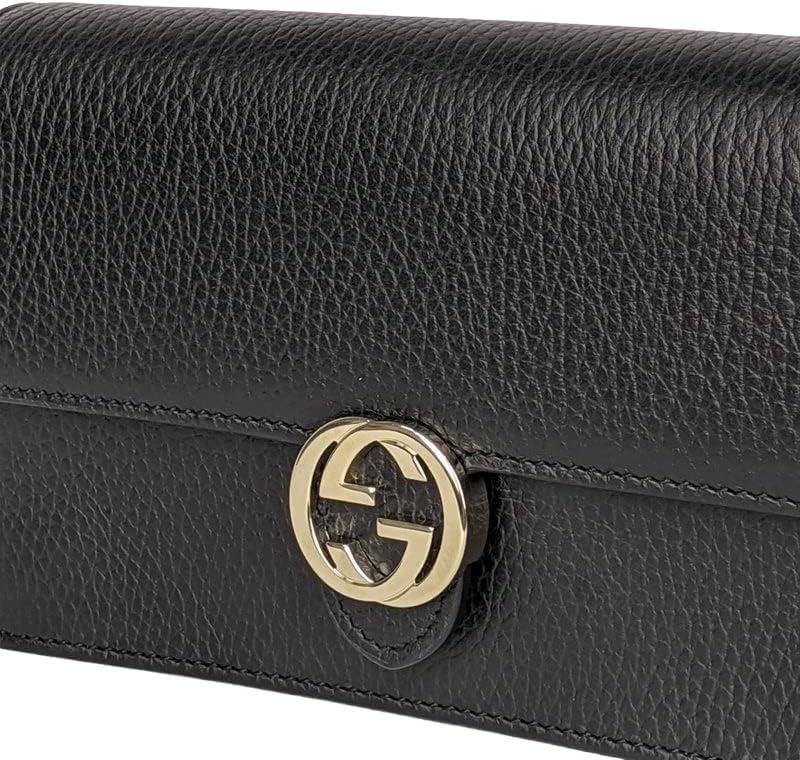 Model number: 615523 Black "Dollar" calfskin leather Snap closure Interlocking GG logo Light fine gold-tone hardware