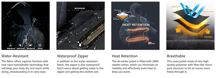 WATER REPELLENT: Professional water repellent jacket, keep your body always dry and comfortable, you won't worry about getting wet while skiing, snowboarding, hunting, hiking in inclement weather