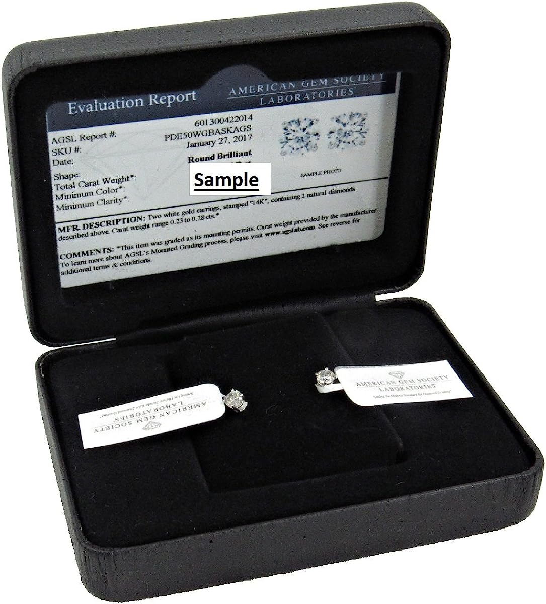 AGS Certified diamonds. Each earring is tagged by AGS with the unique number of the included certificate. The Certificate can be verified on the American Gem Lab Society website