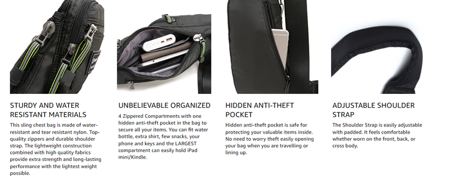 - ✅【Unbalance backpack wearing styles】It has great flexibility. You can use it both as chest pack and shoulder bag. Also it can be worn in the front or back of body.