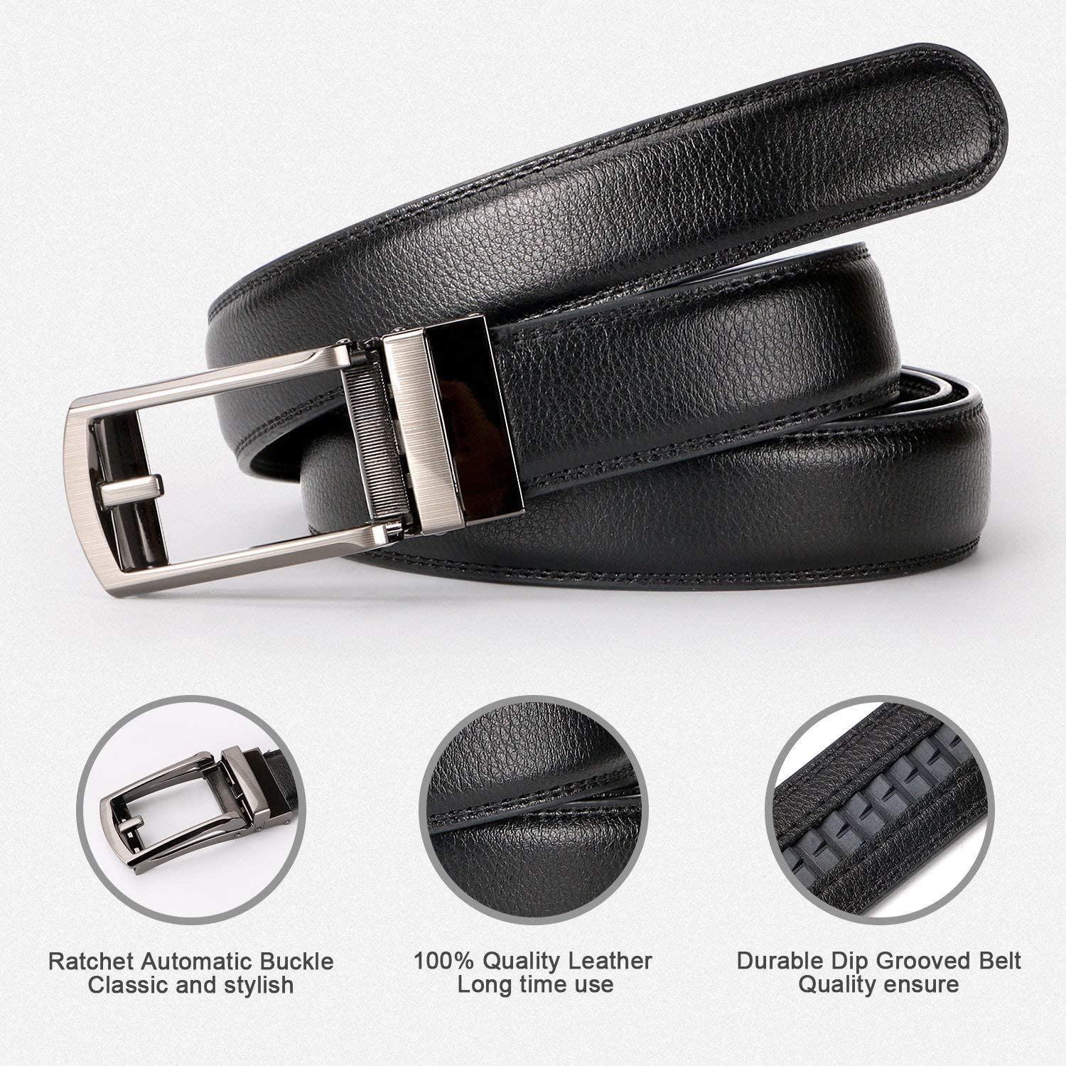 • Please note that the color of this belt buckle is not silver. This is a new style high quality leather ratchet dress belt, Comfortable and easy to adjust if needed. A simple tug and click is all it takes.If you have any questions with your order, please feel free to contact us. We are always here serve for you.✦ WERFORU Package includes 1*belt, 1*screwdriver and 1*instruction card with coupon code.
