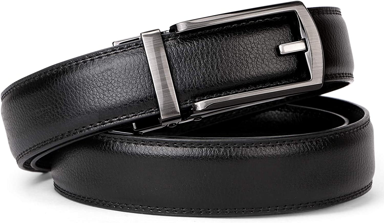 WERFORU Leather Ratchet Belt for Men Perfect Fit Waist Size Up to 50 Inches with Automatic Buckle