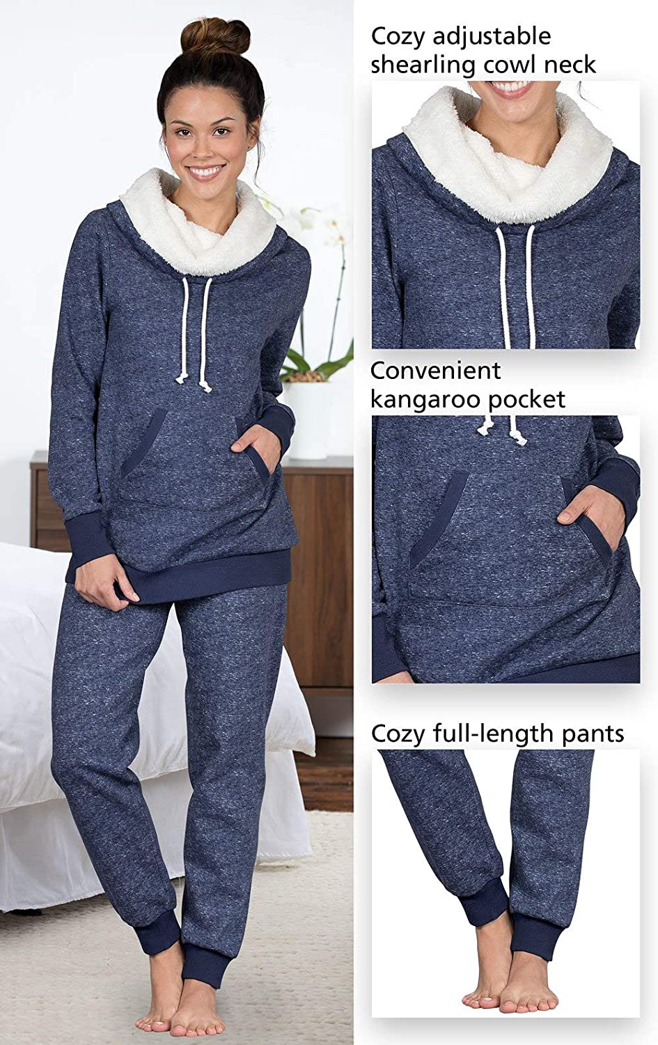 Oh-So-Cozy - The most luxurious sweats ever, this decadent sweatshirt pajama set features a stylish cowl neck top and pants