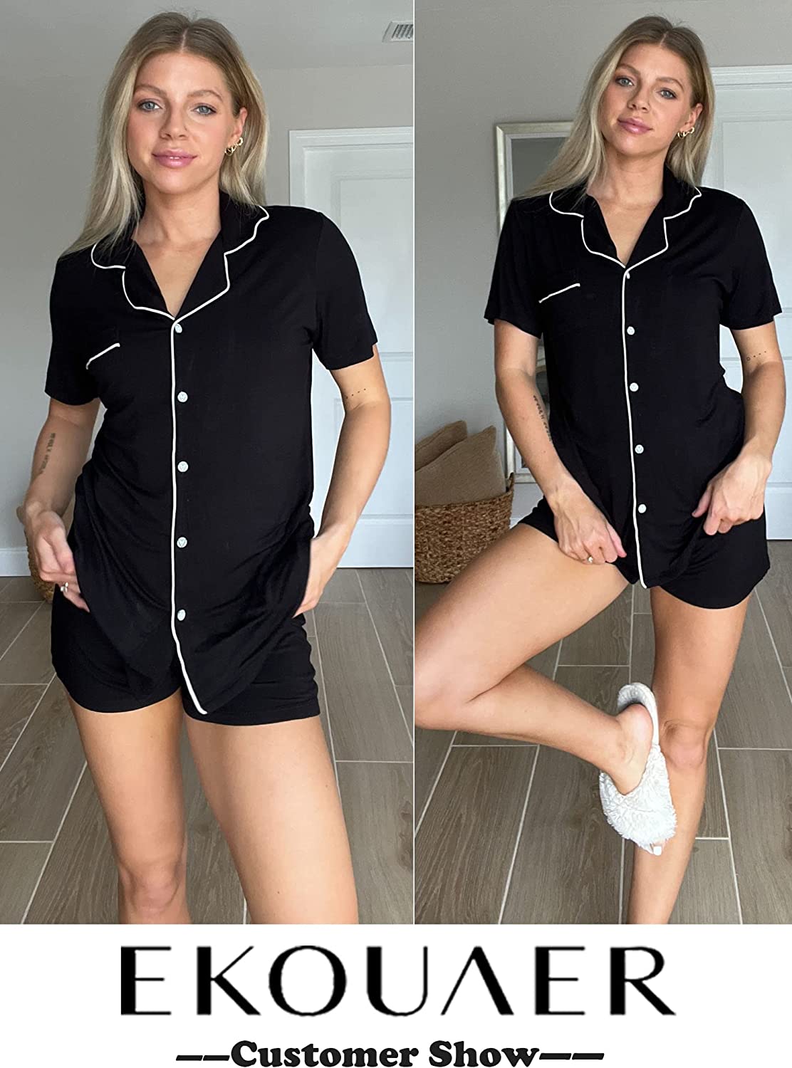 Ekouaer Pajamas Women Short Sleeve Sleepwear Button Down Loungewear Soft Pjs Shorts Set