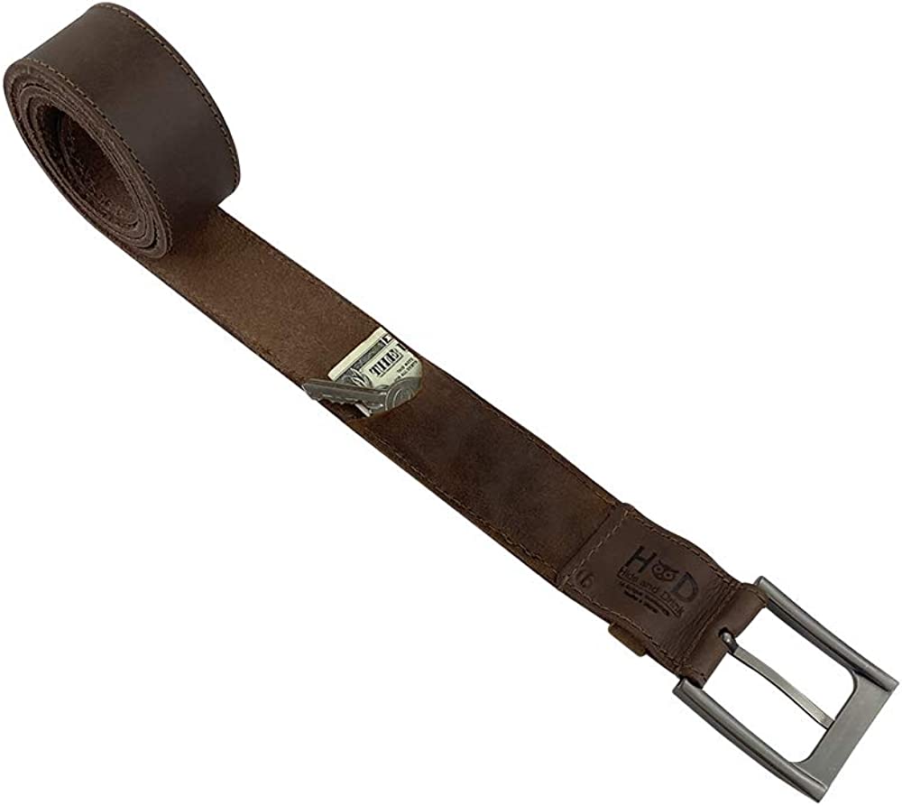 HIDDEN SECURE POCKET IN THE SEAMS: Hide & Drink’s Thick Leather Belt boasts a sneaky little pocket that is sewn into the reverse side of the belt. The small compartment is big enough to hide away dollar bills, a key, and other small objects that you want to keep secure from potential thieves, but small enough for it not to be too bulky, uncomfortable or obvious. Makes for a great belt for traveling with, or even serves as a place to sneak fun things past festival security.